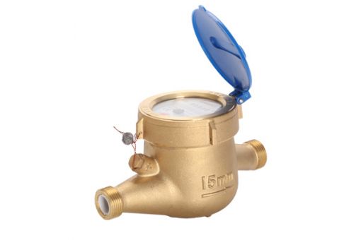 水流流過旋翼多流干式水表時推動葉輪旋轉,葉輪轉速與水的流量成正比,葉輪的旋轉圈數與通過水表的水的總量成正比,由指示裝置累積葉輪的旋轉總圈數而得到流過水表的水的總量,并以立方米(m3)為單位顯示在水表標度盤上。